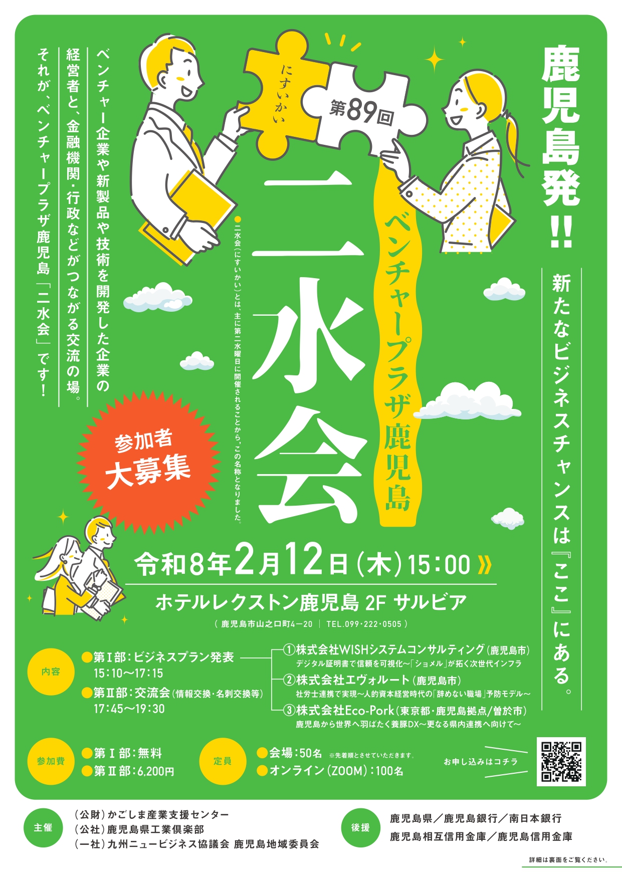 今回で89回目となるベンチャープラザ鹿児島「二水会」を,下記により開催いたしますので,御参加くださいますよう御案内申し上げます。