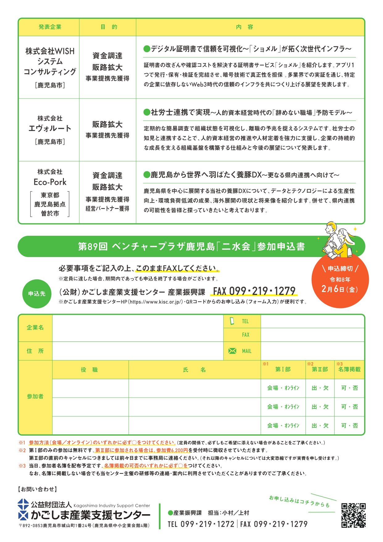 問合せ先 (公財)かごしま産業支援センター 産業振興課